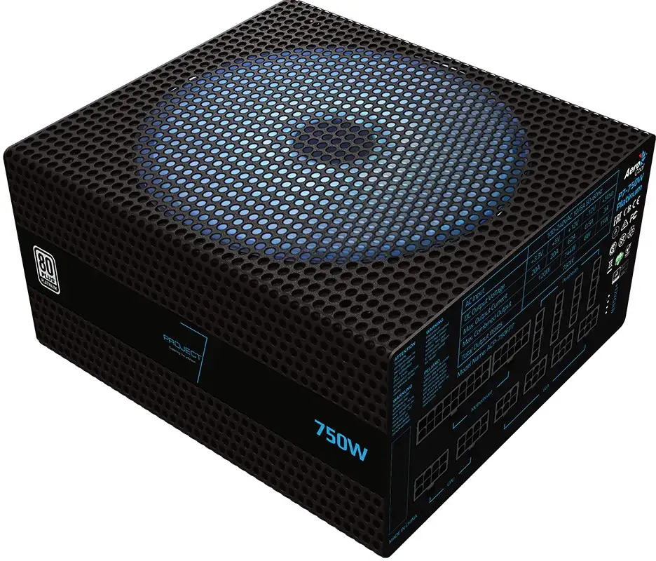 Aerocool Lux RGB 750W. Koguvõimsus: 750 W, AC-sisendpinge: 220 - 240 V, AC-sisendsagedus: 50 - 60 Hz. Otstarve: PC, 80 PLUS sertifikaat: 80 PLUS Bronze, Müratase: 20 dB. Toote värv: Must, Ventilaatori paiknemine: Ülaosa. Kaablid kaasa arvatud: Vahelduvvool. Sagedustolerants: 94 protsenti