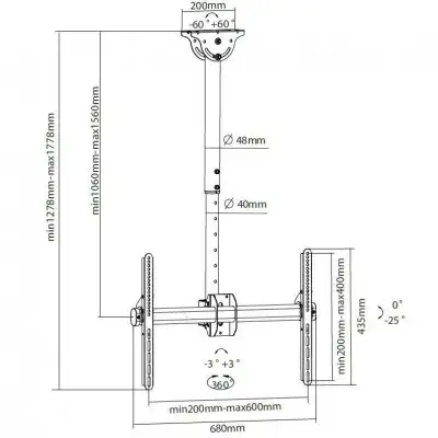 | Seadme tüüp | Bracket (full-motion) - ceiling mountable |