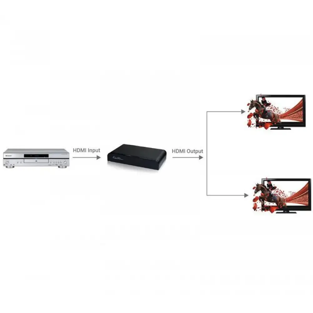 Techly IDATA HDMI-4K2. Videopordi tüüp: HDMI, Videoväljund: 2x HDMI, Videosisend: 1x HDMI F. Maksimaalne resolutsioon: 4096 x 2160 pikslit, Toote värv: Must, Värvisügavus: 36 bitti. Väljundpinge: 5 V. Laius: 96 mm, Sügavus: 59 mm, Kõrgus: 17 mm. Jätkusuutlikkuse sertifikaadid: CE, RoHS
