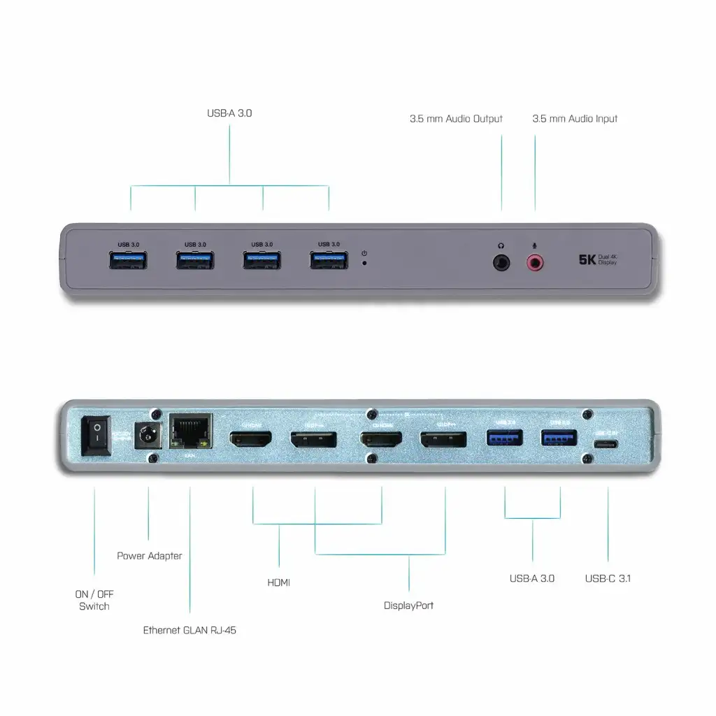 i-tec CADUAL4KDOCK. Ühenduvustehnoloogia: Juhtmega ühendatud, Hostiliides: USB 3.2 Gen 1 (3.1 Gen 1) Type-C, Kõrvaklappide ühenduvus: 3,5 mm. Ethernet LAN-i andmeedastuskiirused: 10,100,1000 Mbit/s. Toote värv: Must, Türkiis, Maksimaalne digitaalresolutsioon: 5120 x 2880 pikslit, Kaabli luku pesa tüüp: Kensington. Toiteallika tüüp: Vahelduvvool, AC-sisendpinge: 100 - 240 V, Sisendvool: 2 A. Toetatud Windowsi operatsioonisüsteemid: Windows 10, Windows 10 Education, Windows 10 Education x64, Windows 10 Enterprise, Windows 10..., Toetatud Maci operatsioonisüsteemid: Mac OS X 10.0 Cheetah, Mac OS X 10.1 Puma, Mac OS X 10.10 Yosemite, Mac OS X 10.11 El Capitan, Mac..., Toetatud Linuxi operatsioonisüsteemid: Ubuntu 14.04, Ubuntu 16.04, Ubuntu 17.10, Ubuntu 18.04 LTS