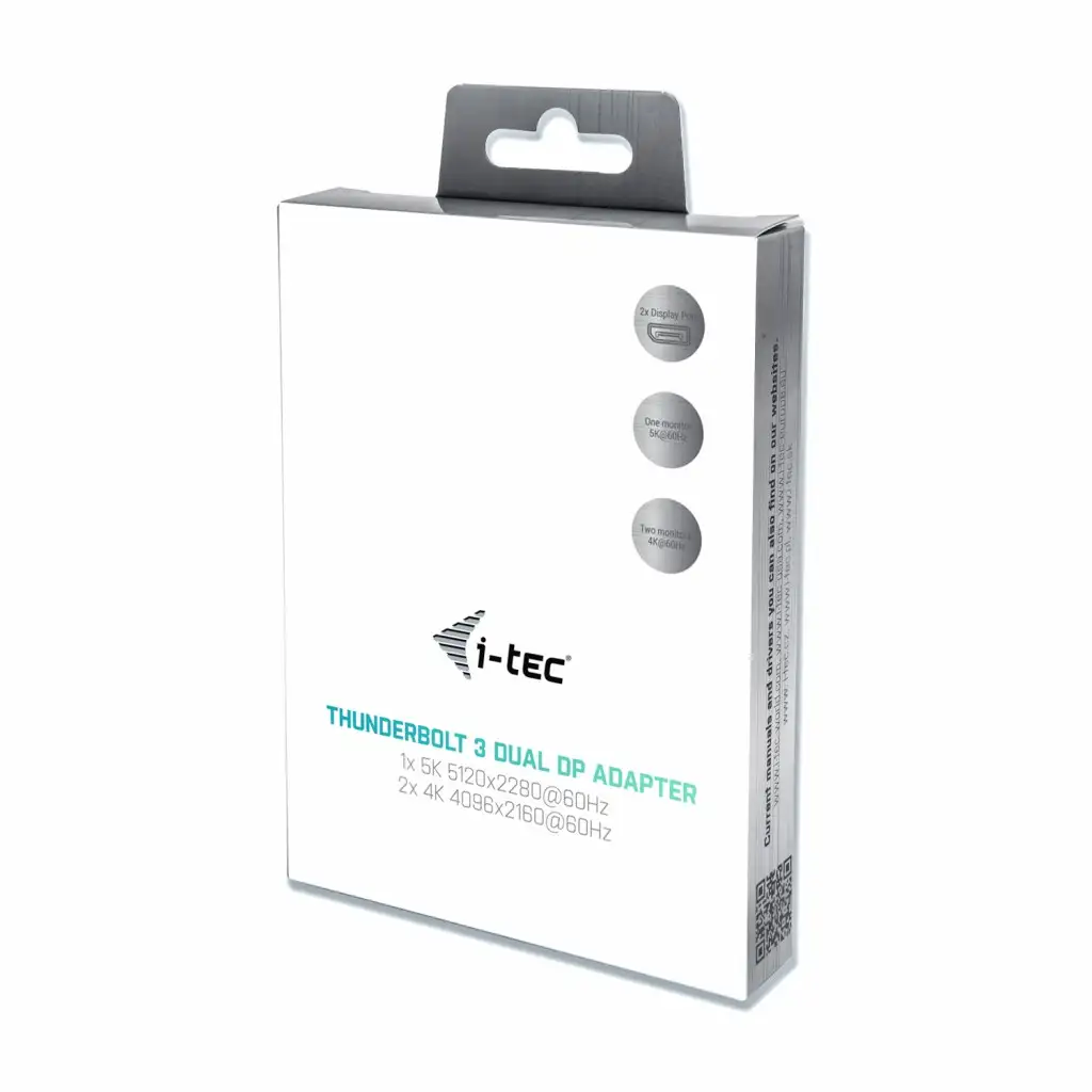 i-tec TB3DUAL4KDP. USB versioon: Thunderbolt 3, USB-pistmiku tüüp: USB tüüp-C, DisplayPort versioon: 1.2a. Toote värv: Hall. Laius: 100 mm, Sügavus: 60 mm, Kõrgus: 15 mm. Pakendi tüüp: Karp, Pakendi laius: 180 mm, Pakendi sügavus: 130 mm. Kaablid kaasa arvatud: Thunderbolt