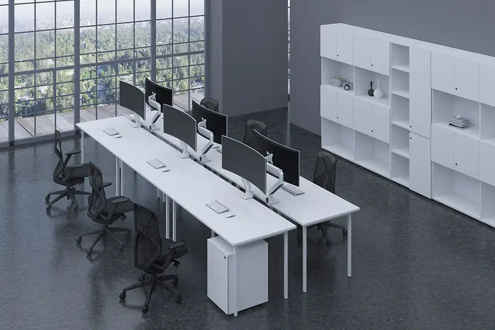 The Neomounts Select NM-D775WHITEPLUS is a tilt-, swivel and rotatable desk mount for curved screens up to 49". This mount is a great choice for space saving placement on desks using a top-fix desk clamp or grommet mount. The NM-D775WHITEPLUS mounts are specifically designed to support curved screens. They feature a strengthened head for curved screens and are designed to support a higher total capacity up to 49" and a maximum weight of 18 kg. Neomounts Select's unique tilt (90°), rotate (180°) and swivel (180°/ 360°) technology allows the NM-PLUS mounts to change to any viewing angle for optimal use of the capabilities of the ultra-wide screen. The mount is equipped with a 180° stop mechanism. The mounts are easily adjustable in height to 59 centimetres, using a gas spring. Additionally, the mounts are also adjustable in depth, from 0 to 63 centimetres. A unique cable management conceals and routes cables from mount to the ultra-wide screen. The NM-D775WHITEPLUS desk mounts are ideal for use in offices, on counters and in reception areas. All installation material is included with the product.