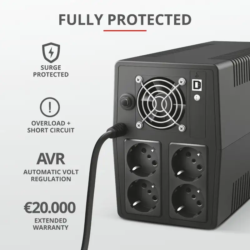 Tootja koduleht | www.trust.com/en/product/23505-paxxon-1500va-ups-with-4-standard-wall-power-outlets |