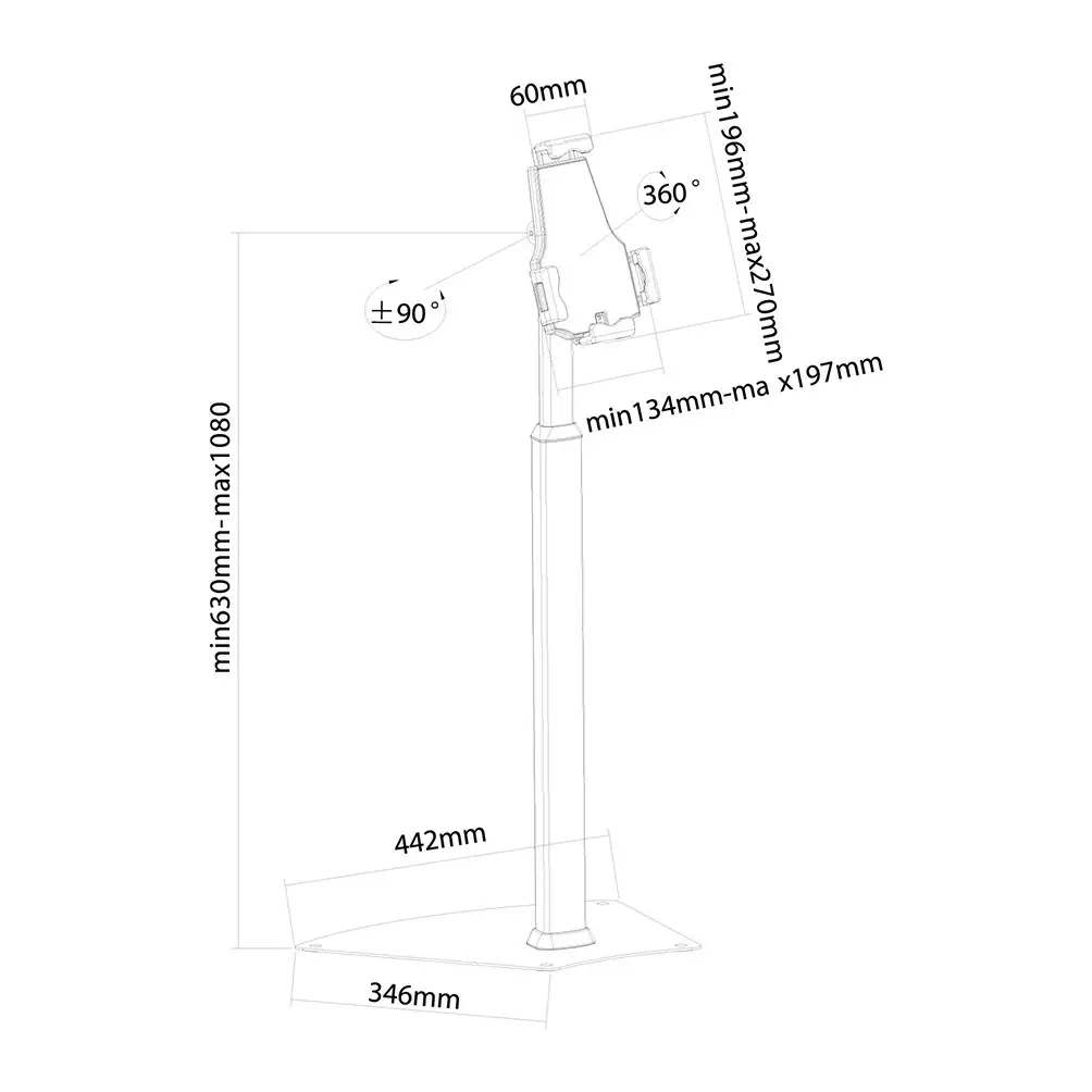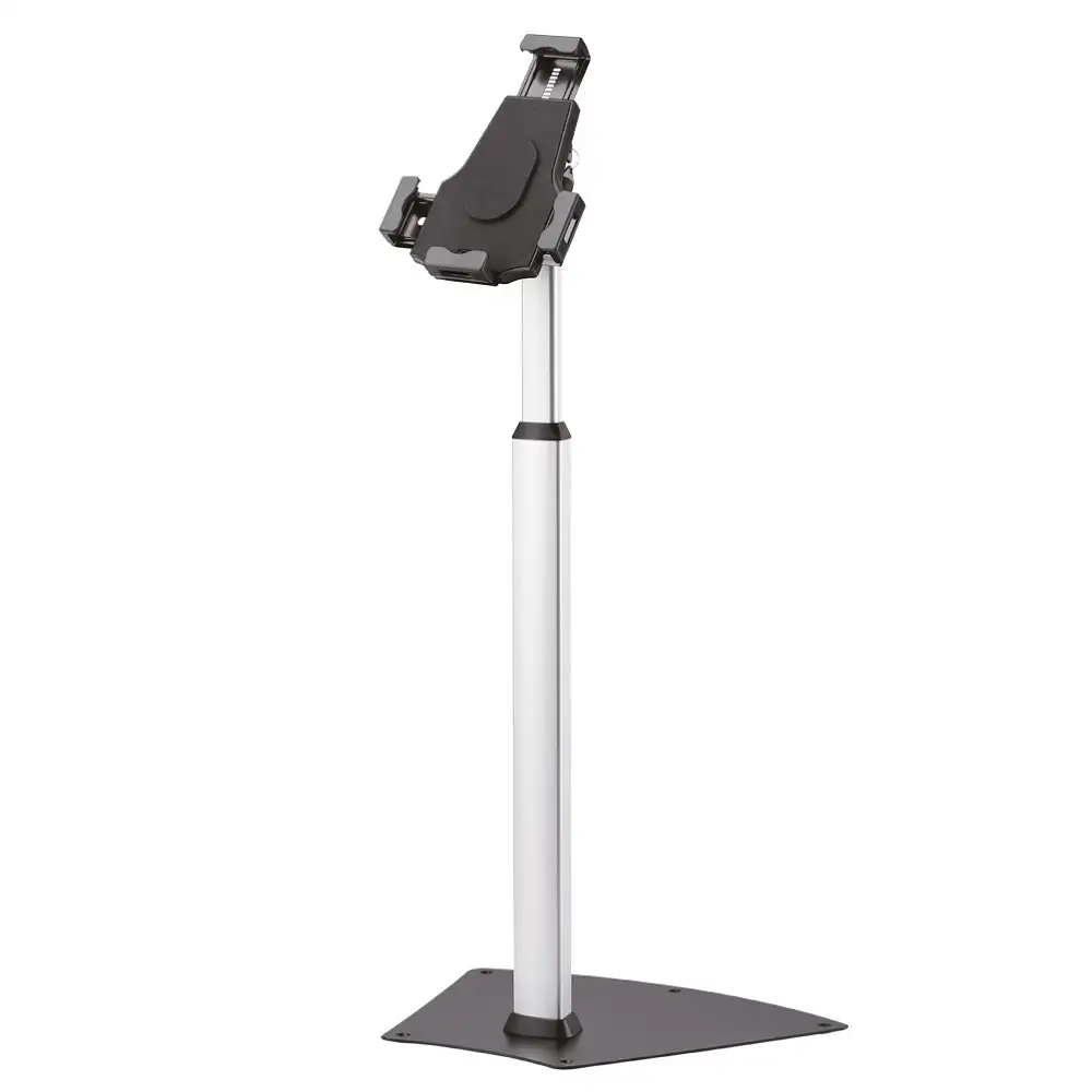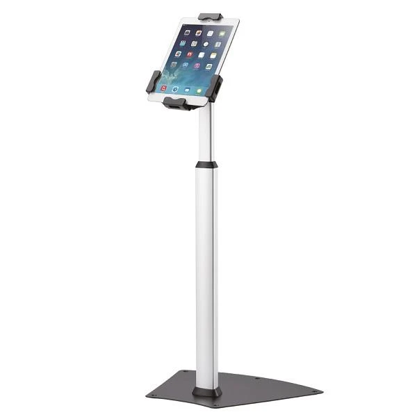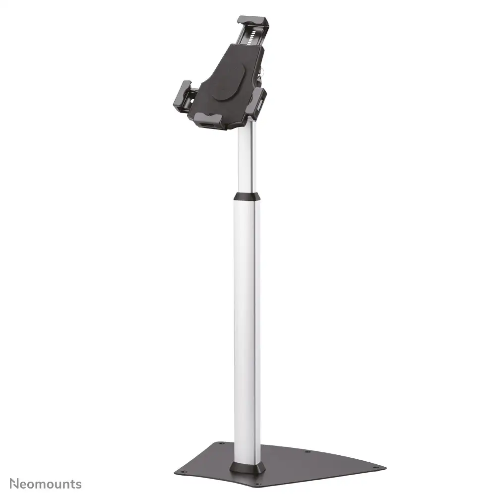 The Neomounts by Newstar floor stand, model TABLET-S200SILVER, anti-theft tablet floor stand with lock, is designed for securely displaying in the public. Width adjustable panel allows to install most 7.9"-10.5" iPad tablets. Invisible cable management inside the tube can make the wire organized better. This mobile stand is a great choice for space saving placement or when wall-, ceiling mounting or desk placement is not an option. This stand stretches your investment by serving a variety of projection needs by sharing a tablet over multiple rooms, sales floors or trade shows. Get optimal positioning for both standing and seated audiences, in any application, in any part of your location. Neomounts by Newstar TABLET-S200SILVER is lockable, height adjustable from 63 - 108 cm and suitable for most tablets. Also this project can be used both vertical as horizontal. The stand has mounting holes to secure the stand to the floor using screws. The weight capacity of this product is 1 kg. All installation material is included with the product.