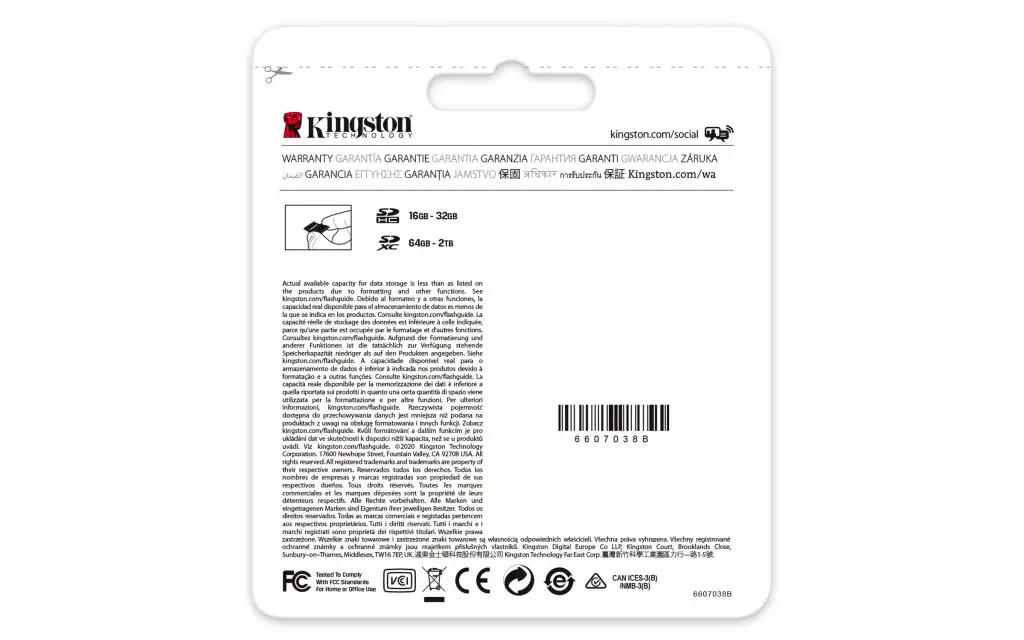 Kingston Technology Canvas Go! Plus. Maht: 64 GB, Välkmälukaardi tüüp: SD, Välkmälu klass: Klass 10, Sisemälu tüüp: UHS-I, Lugemise kiirus: 170 MB/s, Kirjutamise kiirus: 70 MB/s, UHS Speed Class: Class 3 (U3), Video Speed Class: V30. Kaitseomadused: Löögikindel, Temperatuurikindel, Vibratsioonikindel, Veekindel, Röntgenkiirekindel, Toote värv: Must