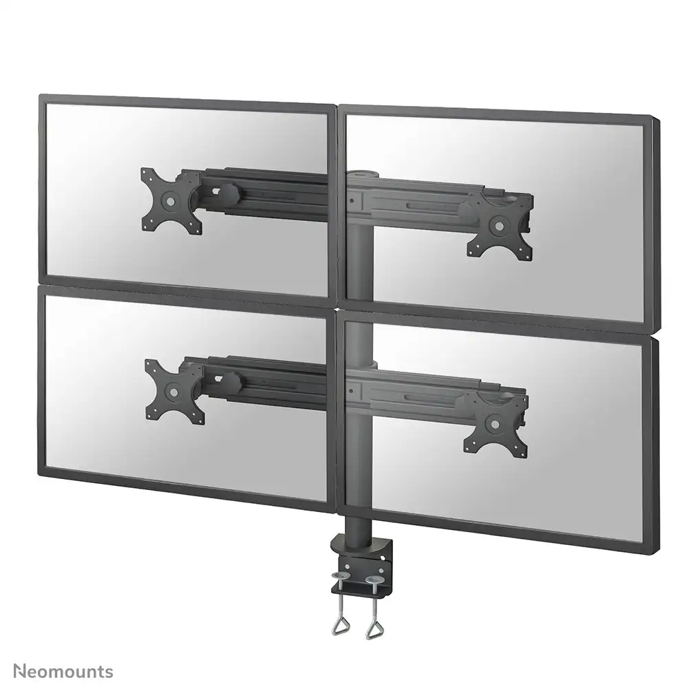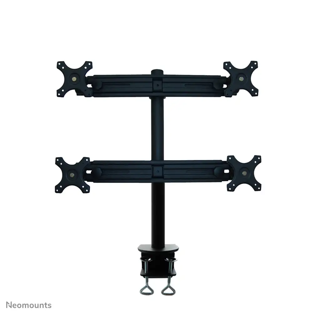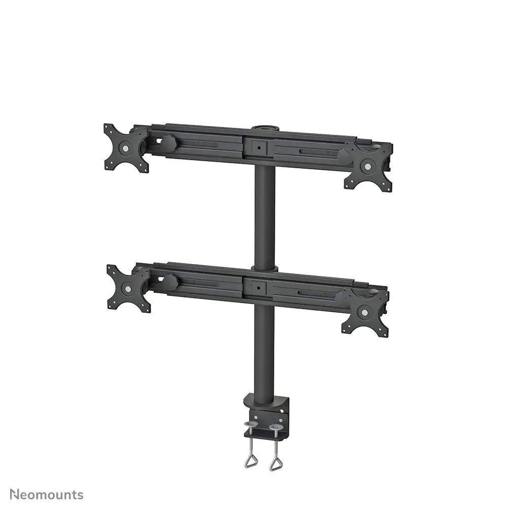 Neomounts FPMA-D700D4. Paigaldus: Klamber, Maksimaalne kaal (mahutavus): 8 kg, Ekraani minimaalne suurus: 48,3 cm (19"), Ekraani maksimaalne suurus: 76,2 cm (30"), Paigaldussüsteemi ühilduvus (min): 75 x 75 mm, Paigaldussüsteemi ühilduvus (max): 100 x 100 mm. Kõrguse reguleerimine, Kaldenurk: 0 - 180°. Toote värv: Must