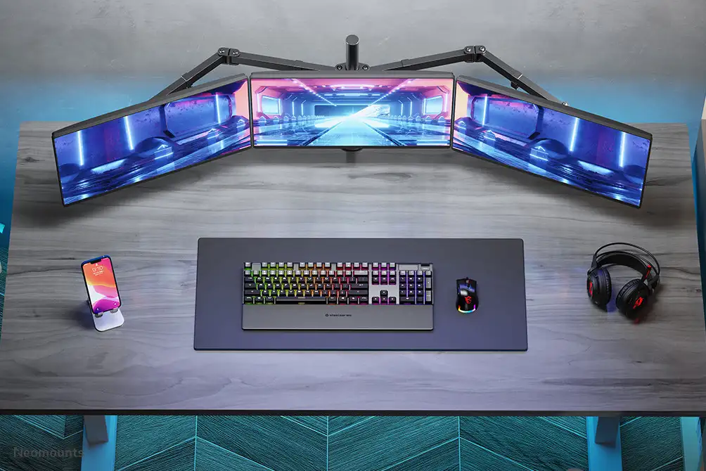 Neomounts FPMA-D550D3BLACK. Paigaldus: Klamber/kaitsekrae, Maksimaalne kaal (mahutavus): 6 kg, Ekraani minimaalne suurus: 25,4 cm (10"), Ekraani maksimaalne suurus: 68,6 cm (27"), Paigaldussüsteemi ühilduvus (min): 75 x 75 mm, Paigaldussüsteemi ühilduvus (max): 100 x 100 mm. Kõrguse reguleerimine, Kaldenurk: 0 - 90°. Toote värv: Must