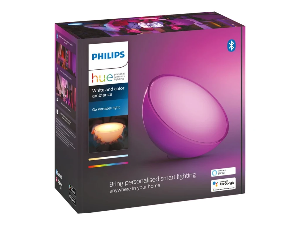 | Technical features | Take your smart light with you with the portable Hue Go. From a playful splash of color to a mood-setting dinner table centerpiece, the Hue Go makes it fun and easy to set the perfect light. Connect to the Hue Bridge for smart control. |