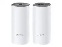 TP-Link Deco E4 (2-pack). Toote värv: Valge, Hall, Antenni tüüp: Sisemodem, Toote tüüp: Võrgusüsteem. Wi-Fi laineala: Kaks sagedusala (2,4 GHz / 5 GHz), Wi-Fi standard: Wi-Fi 5 (802.11ac), WLAN edastuskiirus (max): 1167 Mbit/s. Tulemüür: SPI Firewall. AC-sisendpinge: 100 - 240 V, Vooluadapteri sisendvõimsus: 0,3 A, AC-sisendsagedus: 50 - 60 Hz. Vastavussertifikaadid: RoHS, CE, Sertifikaat: FCC, IC, NCC, BSMI, IDA,RCM, JPA, JRF, VCCI, KC