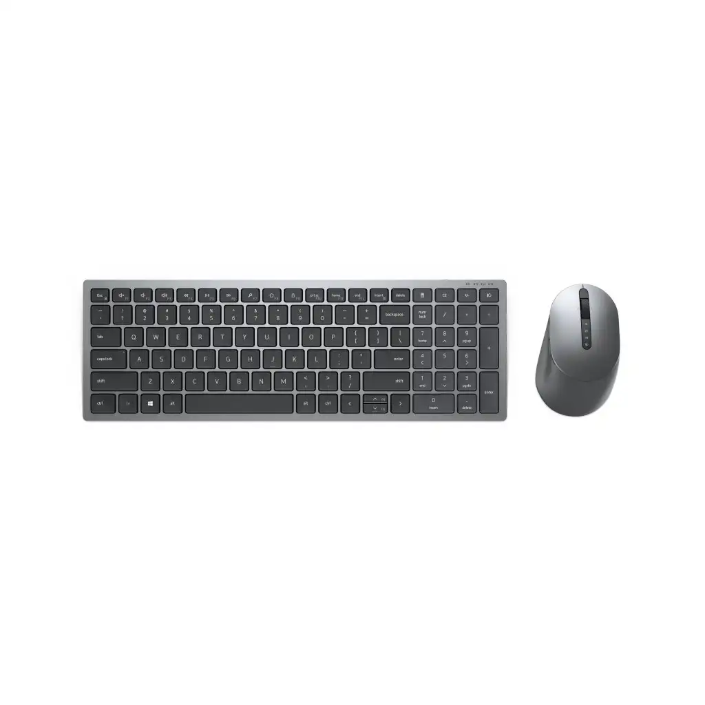 DELL KM7120W. Klaviatuuri kujutegur: Täissuuruses (100%). Klaviatuuri stiil: Sirge. Ühenduvustehnoloogia: Juhtmevaba, Seadme liides: RF juhtmeta ühendus + Bluetooth, Klaviatuuri paigutus: QWERTY, Soovituslik kasutus: Kontor. Toote värv: Hall, Titaanium. Hiir kaasa arvatud