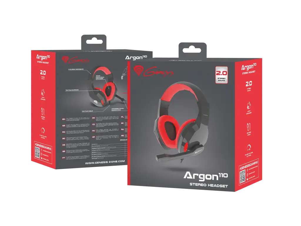 GENESIS Argon 110. Toote tüüp: Kõrvaklapp. Ühenduvustehnoloogia: Juhtmega ühendatud. Soovituslik kasutus: Mängimine. Kõrvaklappide sagedus: 20 - 20000 Hz. Kaabli pikkus: 1,8 m. Kaal: 261 g. Toote värv: Must, Punane