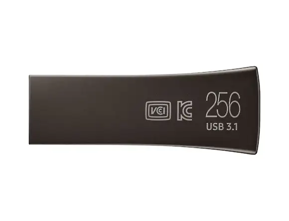 Samsung MUF-256BE. Maht: 256 GB, Seadme liides: USB tüüp A, USB versioon: 3.2 Gen 1 (3.1 Gen 1), Lugemise kiirus: 300 MB/s, Kirjutamise kiirus: 30 MB/s. Toote kuju: Korgita. Salasõna kaitse. Kaal: 10,9 g. Toote värv: Hall
