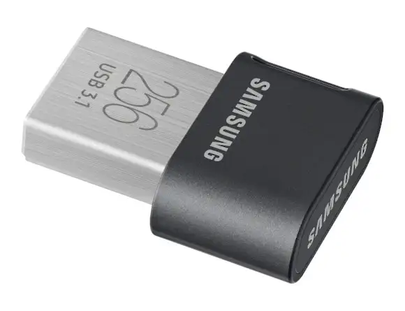 Samsung MUF-256AB. Maht: 256 GB, Seadme liides: USB tüüp A, USB versioon: 3.2 Gen 1 (3.1 Gen 1), Lugemise kiirus: 300 MB/s, Kirjutamise kiirus: 30 MB/s. Toote kuju: Korgita. Salasõna kaitse. Kaal: 3,1 g. Toote värv: Hall, Hõbe