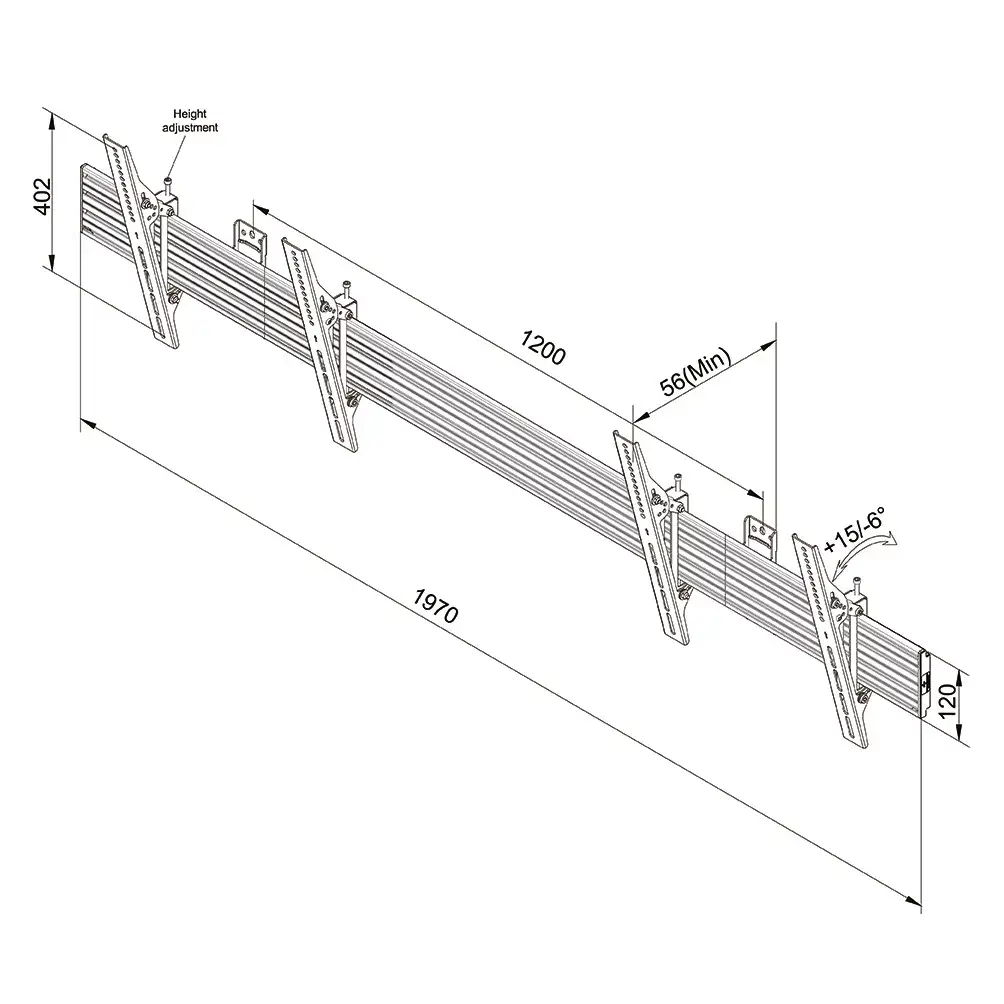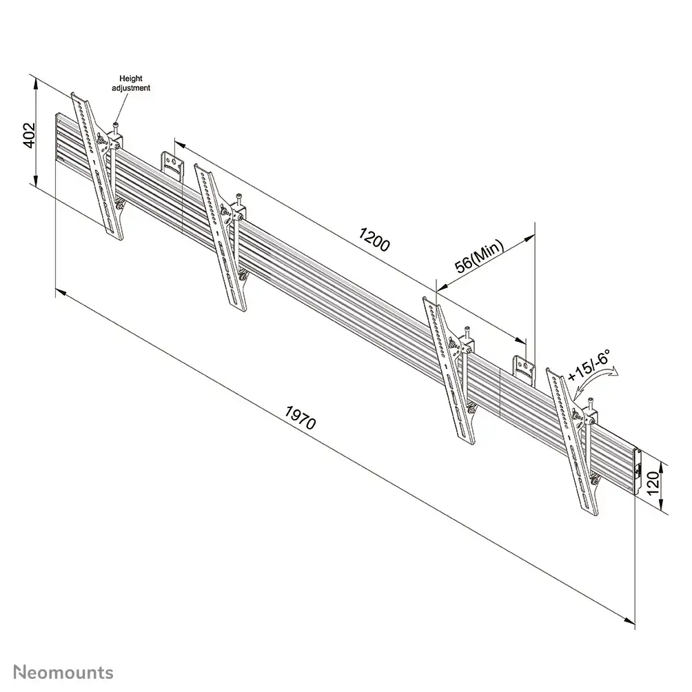 The Neomounts Pro menuboard wall mount, model NMPRO-WMB2, is a tiltable wall mount for two flat screens up to 55"/65". This mount is a great choice when you want the ultimate viewing flexibility with your flat screen. The Neomounts Pro tilt (0°/-6°/+15°) technology allows the mount to change to the best suitable viewing angle. Neomounts Pro NMPRO WMB-series is suitable for 1 to 4 screens. The weight capacity of this product is 30 kg each screen. The wall mount is suitable for screens that meet VESA 100x100 to 400x400mm (65") or VESA 100x100 to 600x400mm (55"). Depth of this mount is 5,6 centimetres.