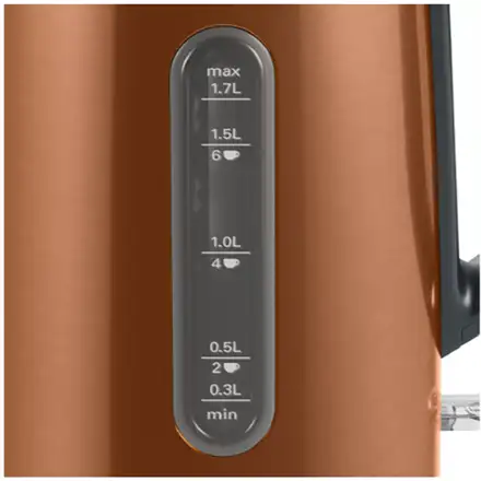Bosch TWK4P439. Veemahuti suurus: 1,7 l. Võimsus: 2400 W. Toote värv: Must, Kuld, Korpuse materjal: Roostevaba teras, Veetaseme indikaator, Ülekuumenemise kaitse. Juhtmevaba. Filtreerimine