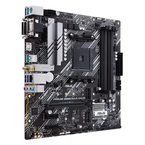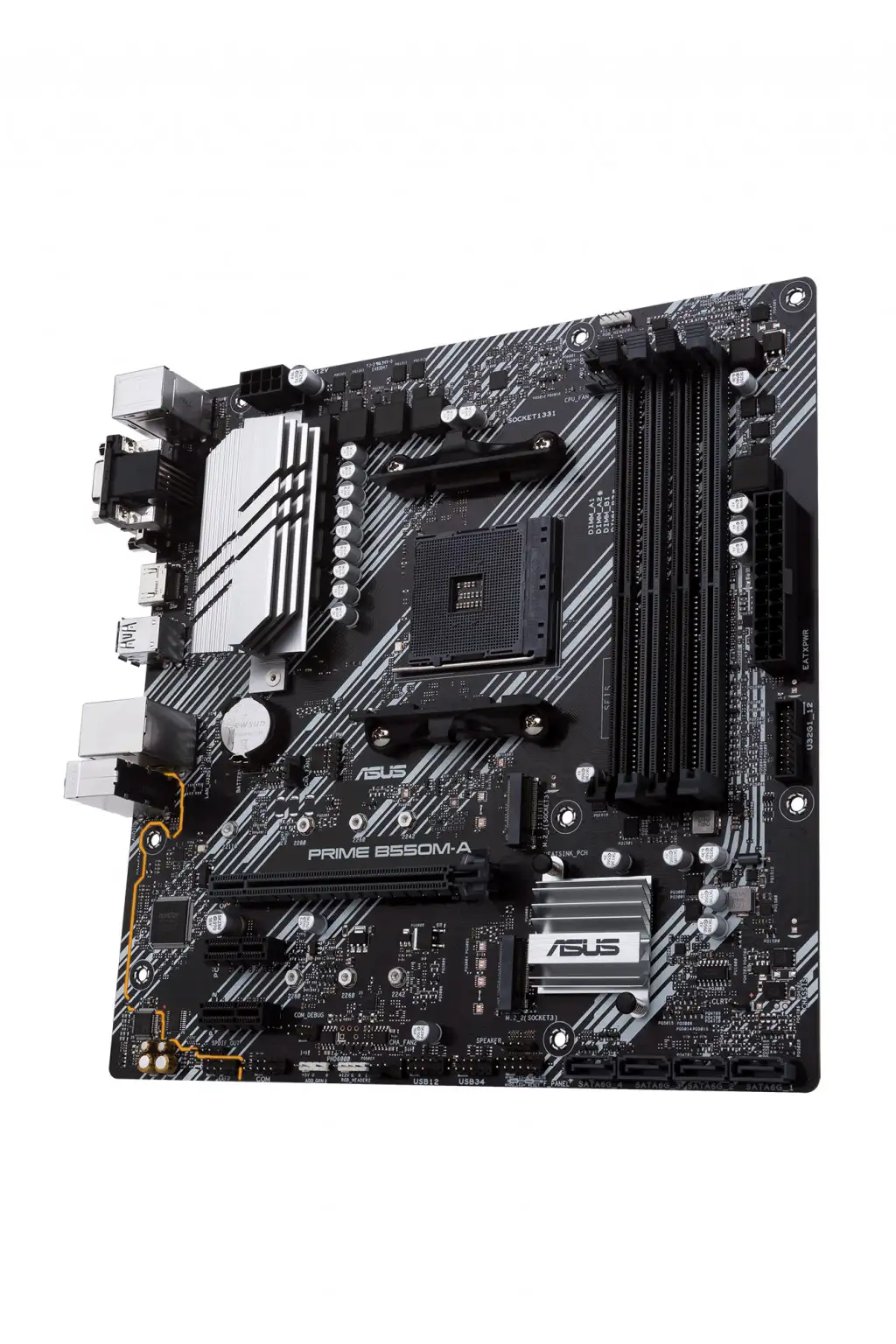 ASUS PRIME B550M-A. Protsessori tootja: AMD, Protsessori pesa: Pesa AM4, Ühilduvad protsessoriseeriad: AMD Ryzen 3000 Series. Toetatud mälutüübid: DDR4-SDRAM, Maksimaalne sisemälu: 128 GB, Mälupesa tüüp: DIMM. Kõvaketta ühenduse tüüp: M.2, SATA. LAN-kontroller: Realtek 8111H. Emaplaadi kujutegur: Mikro ATX, Emaplaadi kiibistik: AMD, Emaplaadi kiip: AMD B550