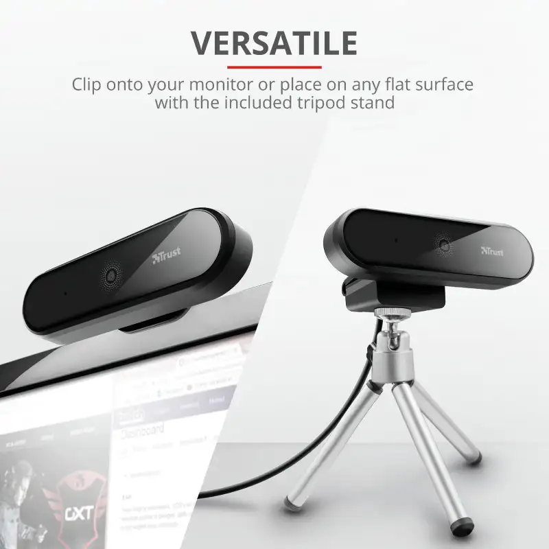 Trust Tyro. Maksimaalne video resolutsioon: 1920 x 1080 pikslit, Kaamera HD tüüp: Full HD, Maksimaalne kaadrisagedus: 30 fps. Liides: USB, Toote värv: Must, Kinnituse tüüp: Klamber/statiiv. Toetatud Windowsi operatsioonisüsteemid: Windows 10, Windows 7, Windows 8, Toetatud Maci operatsioonisüsteemid: Mac OS X 10.15 Catalina. Laius: 115 mm, Sügavus: 80 mm, Kõrgus: 35 mm