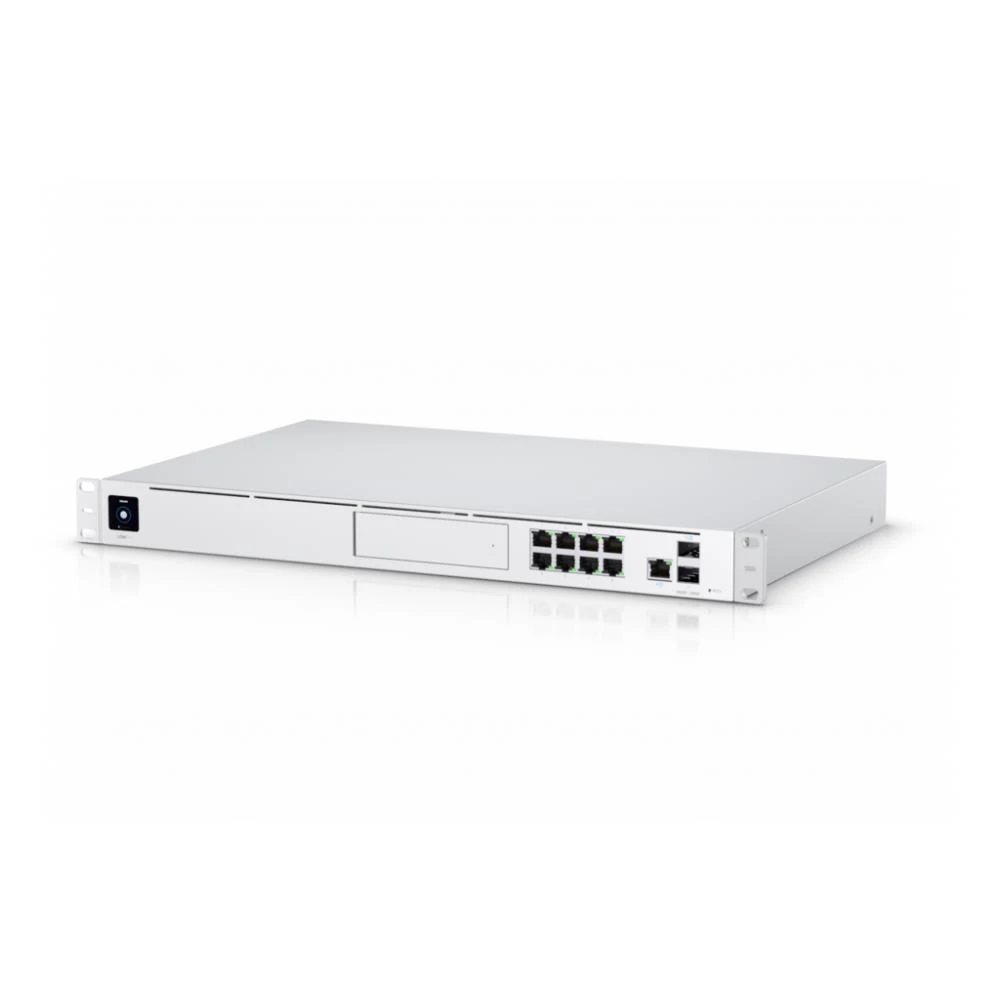 UniFi Dream Machine Pro (UDM-Pro) is an all-in-one enterprise network appliance. UDM-Pro integrates all current and upcoming UniFi controllers with a security gateway, 10G SFP+ WAN, 8-port Gbps switch and off-the-shelf 3.5" HDD support.