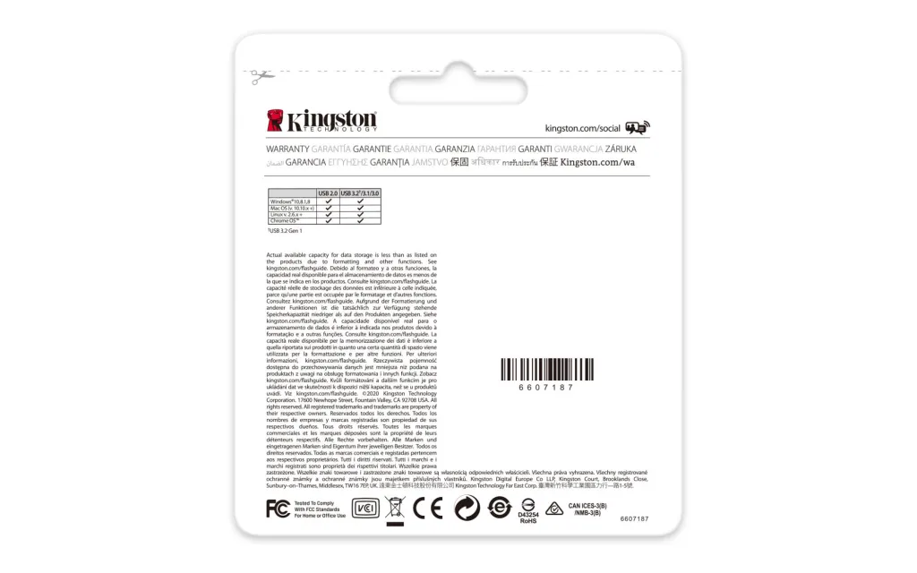 *Some of the listed capacity on a flash storage device is used for formatting and other functions and is thus not available for data storage. As such, the actual available capacity for data storage is less than what is listed on the products. For more information, go to Kingston's Flash Memory Guide.