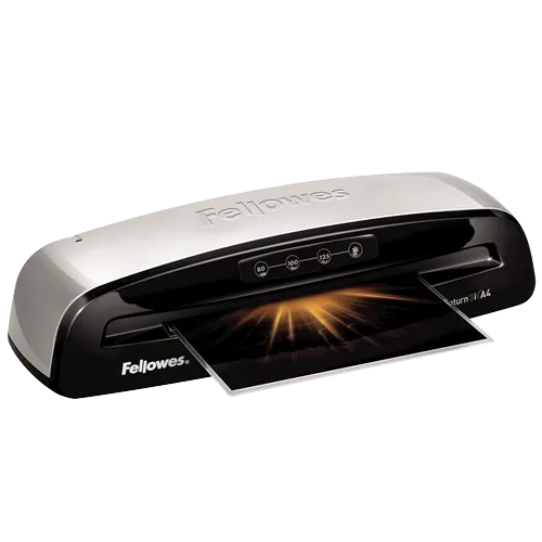 Fellowes Saturn 3i. Maksimaalne lamineerimislaius: 23,5 cm, Tüüp: Külmlamineerimine, Kuumenemisaeg: 1 min. Laius: 436,6 mm, Sügavus: 139,7 mm, Kõrgus: 104,8 mm. Pakendi laius: 489 mm, Pakendi sügavus: 174,5 mm, Pakendi kõrgus: 168,3 mm