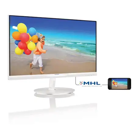 Entertainment with Mobile HD Link (MHL)• MHL technology for enjoying mobile content on big screen• Optional MHL cable allows for HD video audio playback• Charge your mobile device while watching movie• HDMI-ready for Full HD entertainment• Built-in stereo speakers for multimediaAwesome picture quality• AH-IPS display gives awesome images with wide viewing angles• 16:9 Full HD display for best viewing experience• TrueVision ensures lab quality images• SmartImage Lite for an enhanced LCD viewing experienceStylish design• Minimalistic looks with Ultra Narrow Bezel• Superb glossy and texture finish• VESA mount for convenience