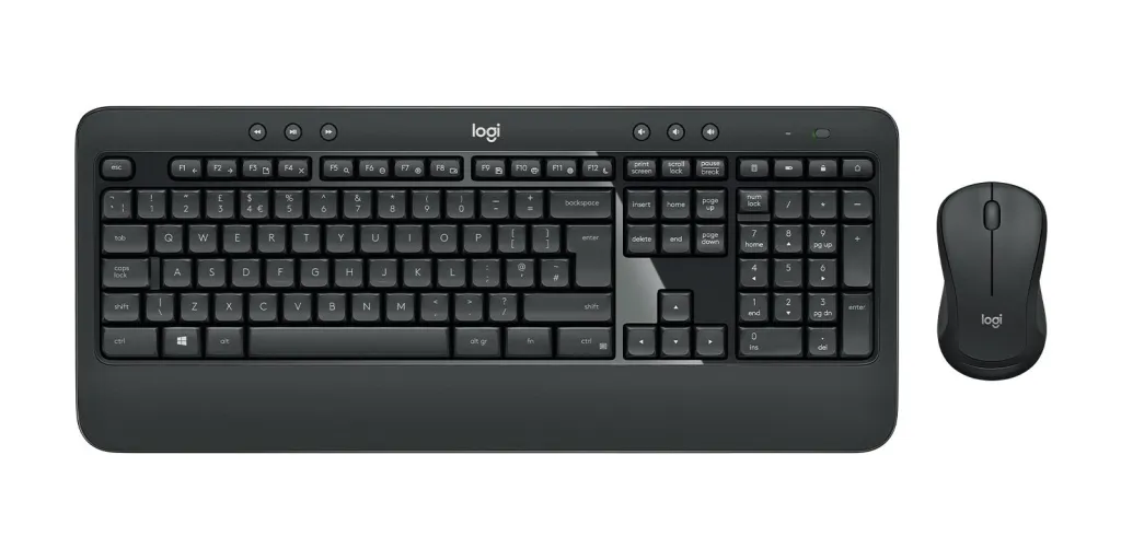 | Tarvikud kaasa arvatud | Logitech MK540 wireless keyboard; Logitech wireless mouse; Logitech Unifying receiver; two AA batteries for keyboard; one AA battery for mouse; user documentation. |