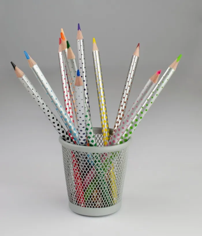Igal pliiatsil spetsiaalne metallist läikiv disainviimistlus.