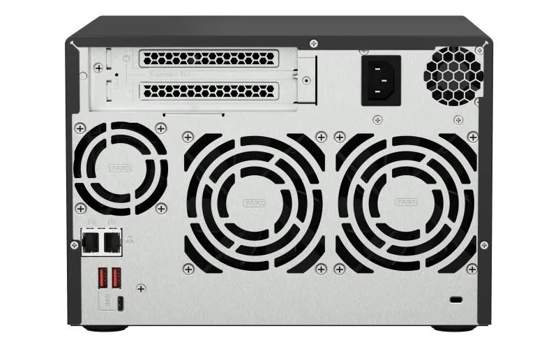 Featuring an AMD Ryzen V1000 series V1500B quad-core processor that delivers great system performance with up to quad-core / 8 threads and Turbo Core up to 2.2 GHz. The TS-673A features two 2.5GbE RJ45 ports and two PCIe Gen 3 slots for you to flexibly deploy 5GbE/10GbE networks. Two M.2 NVMe SSD slots for Qtier Technology and SSD Caching enable constant storage optimization. The TS-673A supports QTS and QuTS hero, allowing users to flexibly switch operating system based on their requirements.