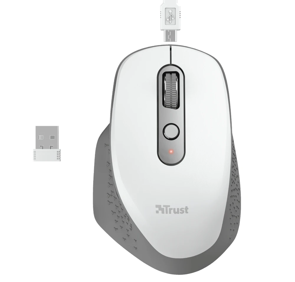 Trust Ozaa. Toote kuju: Parempoolne. Liikumistuvastuse tehnoloogia: Optiline, Seadme liides: Raadioside, Liikumise resolutsioon: 2400 DPI, Klahvide tüüp: Sissevajutatavad nupud, Nuppude arv: 6, Skrolli tüüp: Ratas. Toiteallikas: Patareid. Toote värv: Valge