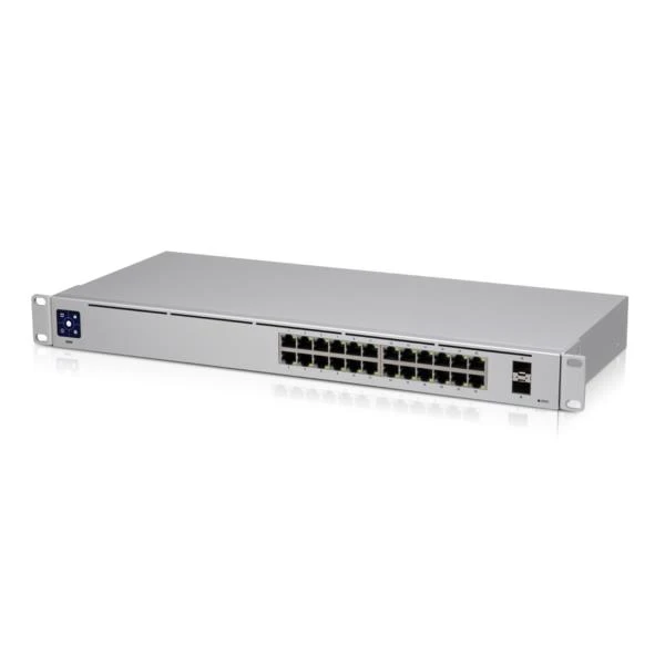 UniFi Switch 24 is a fully managed Layer 2 switch with (24) Gigabit Ethernet ports and (2) Gigabit SFP ports for fiber connectivity