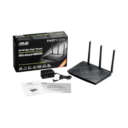 | Box contents | 1 x RT-N18U 2.4GHz 600Mbps High Power Router; 1 x RJ-45 cable;1 x Power adapter;1 x QSG;1 x Warranty card |