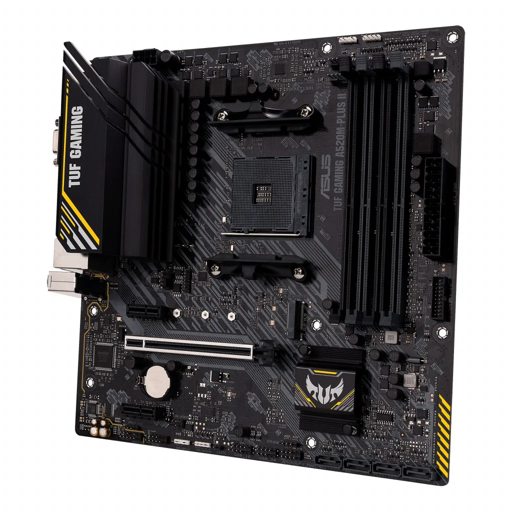 ASUS TUF GAMING A520M-PLUS II. Protsessori tootja: AMD, Protsessori pesa: Pesa AM4, Ühilduvad protsessoriseeriad: AMD Ryzen 3000 Series, AMD Ryzen 5000 Series. Toetatud mälutüübid: DDR4-SDRAM, Maksimaalne sisemälu: 128 GB, Mälupesa tüüp: DIMM. Kõvaketta ühenduse tüüp: M.2, PCI Express 3.0, SATA III, Toetatud ketaste tüübid: HDD & SSD, RAID-tasemed: 0, 1, 10. Maksimaalne resolutsioon: 3840 x 2160 pikslit. USB-pistmiku tüüp: USB tüüp A