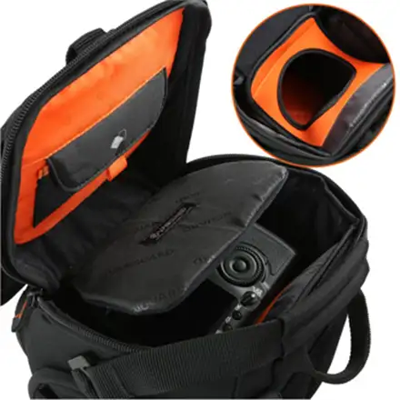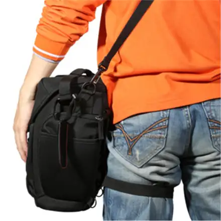 Holds pro DSLR plus 70-200mm f/2.8 or pro DSLR with 2 lens + top pocket ● Quick access main opening Handle type Single handle ● Ergonomic design with unique leg strap for extra stabilization Shoulder strap type Detachable ● Padded shoulder strap INTERNAL ● Top handle for hand carry Function Yes ● ICS Belt & Harness compatible Divider Yes ● LCD screen cover & DSLR cradle included Divider quantity 3 ● Multiple accessory pockets keep things well organized FEET No ● Side hanging system Quantity 0 ● Name card holder Material ● Rain cover included
