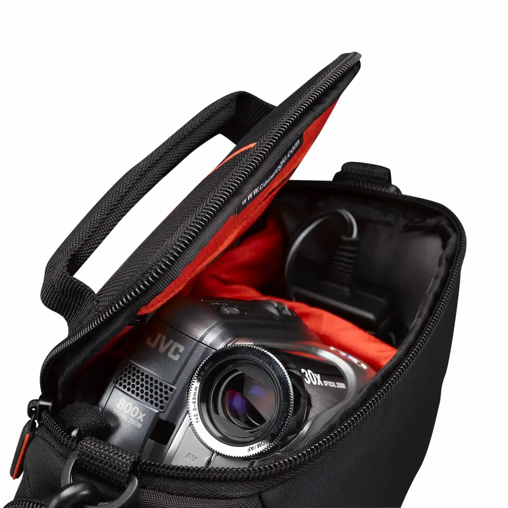 * Camcorder kit bag; * Interior divider separates hardware and charger; * Side storage pockets for cables and accessories; * Internal, zippered pocket; * Shoulder strap included