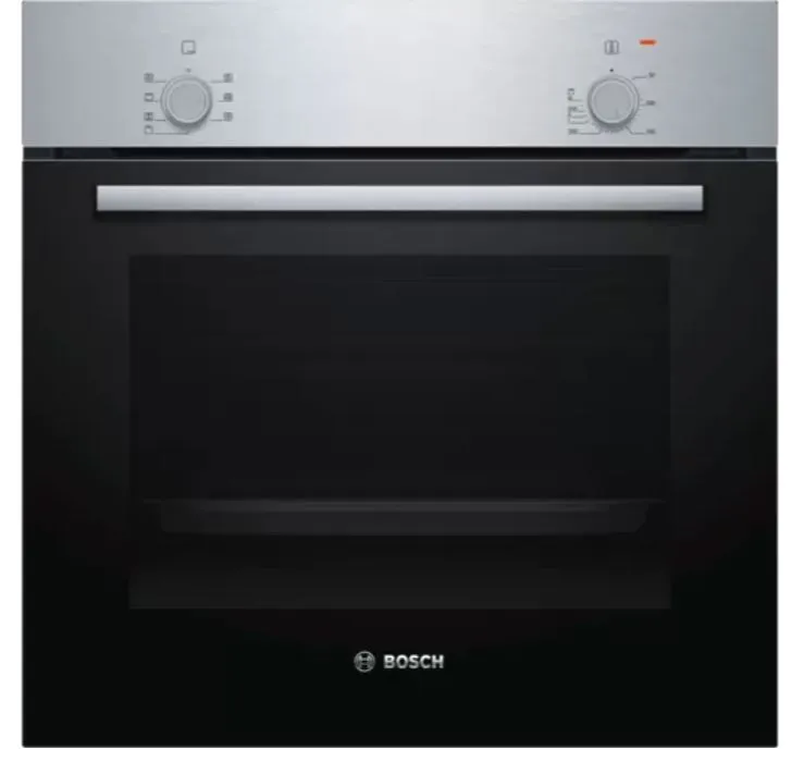 Bosch Serie 2 HBF010BR1S. Ahju suurus: Keskmine, Ahju tüüp: Elektriahi, Ahju(de) sisemahutavus kokku: 66 l. Seadme paigaldus: Sisseehitatud, Toote värv: Roostevaba teras, Kontrolli tüüp: Pöörlev. Energiatõhususe klass: A, Energiakulu (tavaline): 0,98 kWh, Energiakulu (sundkonvektsioon): 0,79 kWh. Lambi tüüp: Halogeen. Paigalduskoha laius: 56,8 cm, Paigalduskoha sügavus: 55 cm, Paigalduskoha kõrgus: 59,7 cm