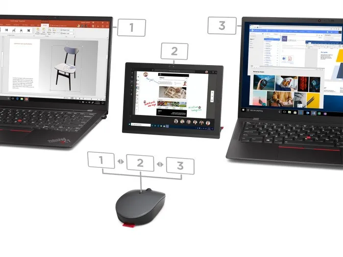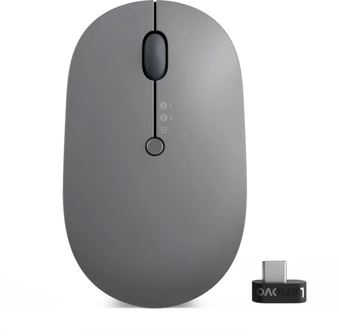 Lenovo Go Wireless Multi Device. Toote kuju: Mõlemakäeline. Liikumistuvastuse tehnoloogia: Optiline, Seadme liides: RF Wireless + Bluetooth + USB Type-A, Liikumise resolutsioon: 2400 DPI, Klahvide tüüp: Sissevajutatavad nupud, Nuppude arv: 3, Skrolli tüüp: Ratas. Valguse värv: Sinine. Toiteallikas: Patareid/kaabel. Toote värv: Hall