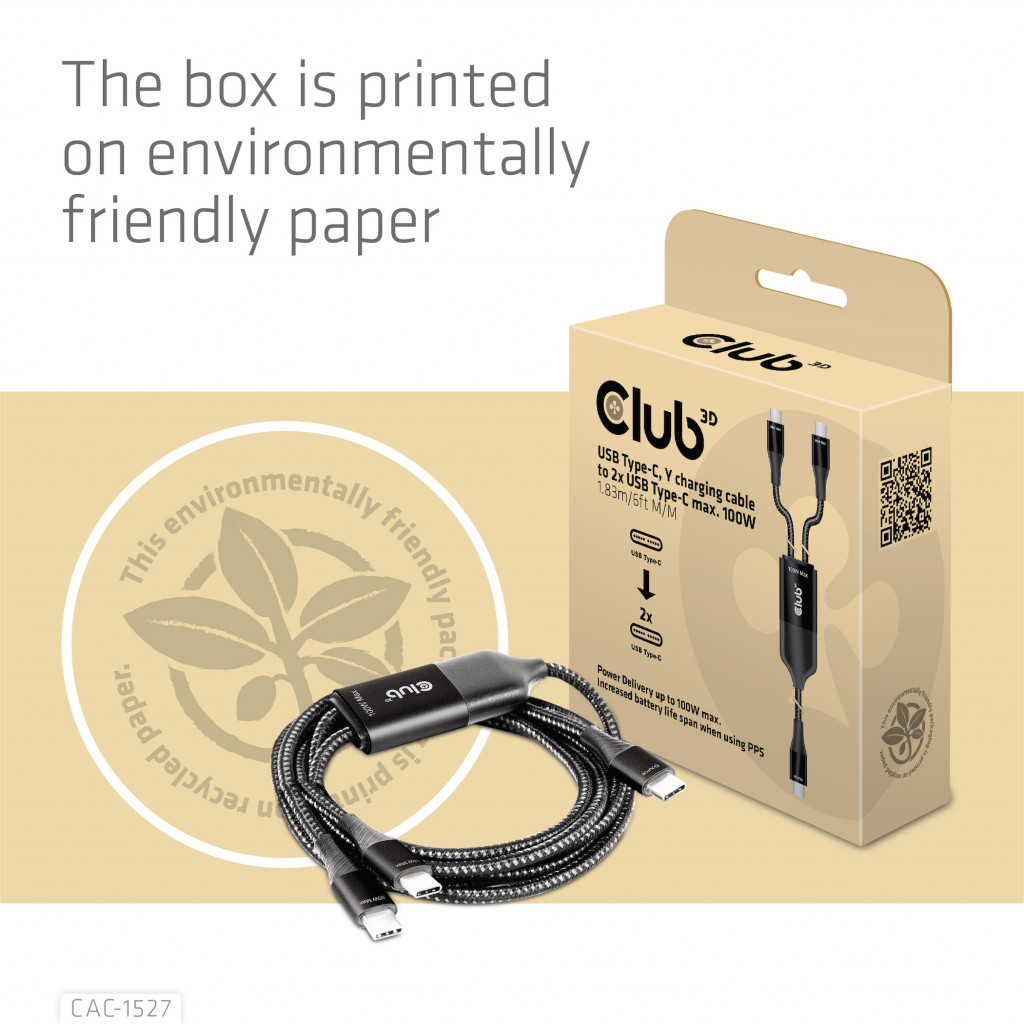 CLUB3D CAC-1527. Kaabli pikkus: 1,83 m. Pistmik 1: USB C, Pistmik 2: 2 x USB C, Toote värv: Must
