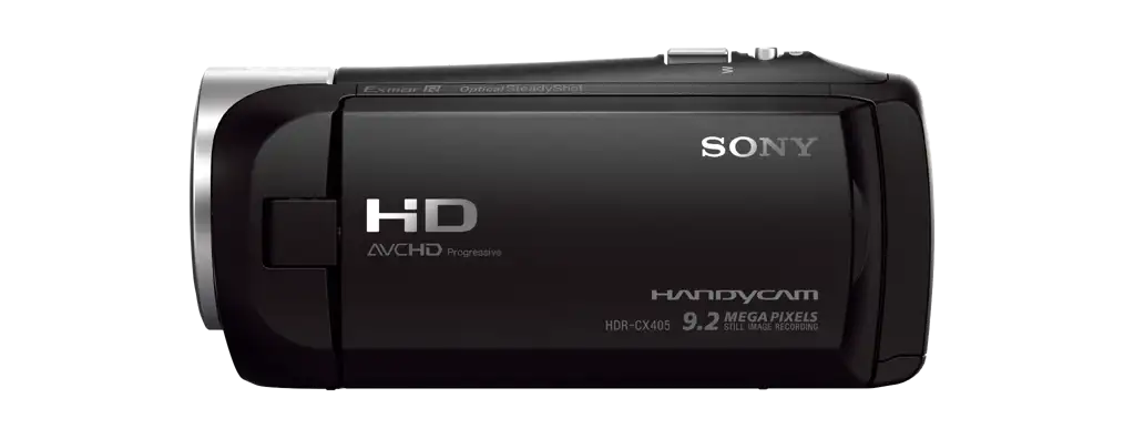 Sony HDRCX405. Megapiksleid kokku: 9,2 MP, Anduri tüüp: CMOS, Optilise sensori suurus: 25,4 / 5,8 mm (1 / 5.8"). Optiline suum: 30x, Digitaalne suum: 350x, Fookuskauguse ulatus: 1.9 - 57 mm. Videokaamera meedia tüüp: Mälukaart, Ühilduvad mälukaardid: MicroSD (TransFlash), MicroSDHC, MicroSDXC. Teravustamine: Automaatne/manuaalne. Valgussärituse režiimid: Automaatne, Montaažirežiimid: Ilutulestik, Maastik, Portree, Prožektor, Rand, Lumi