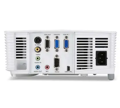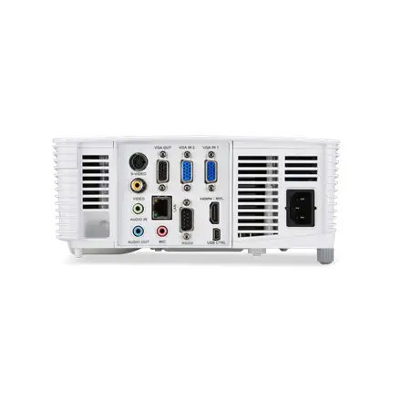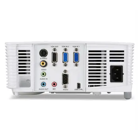 Acer S1283e. Projektori heledus: 3100 ANSI luumenit, Projektori loomulik resolutsioon: XGA (1024x768), Ekraani suuruse ühilduvus: 812,8 - 7620 mm (32 - 300"). Lambi tööiga: 4000 h, Pirni võimsus: 210 W, Lambi tüüp: OSRAM. Apertuuriulatus (F-F): 2,8 - 2,8 Tekst, Projitseerimiskauguse suhe: 0.62:1, Digitaalne suum: 2x. Toetatud graafikaresolutsioonid: 1024 x 768 (XGA), 1920 x 1200 (WUXGA). Komposiitvideo sisend: 1 Tekst, RS-232 portide arv: 1 Tekst