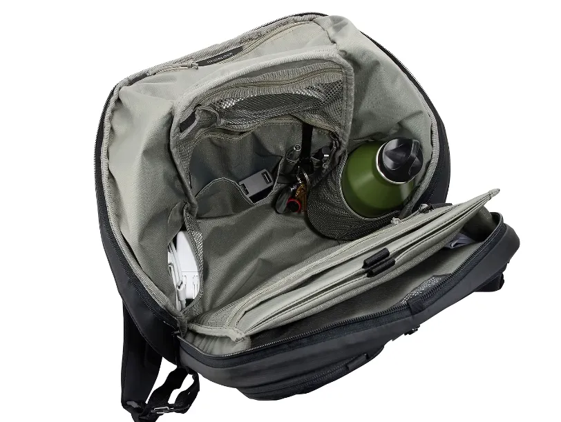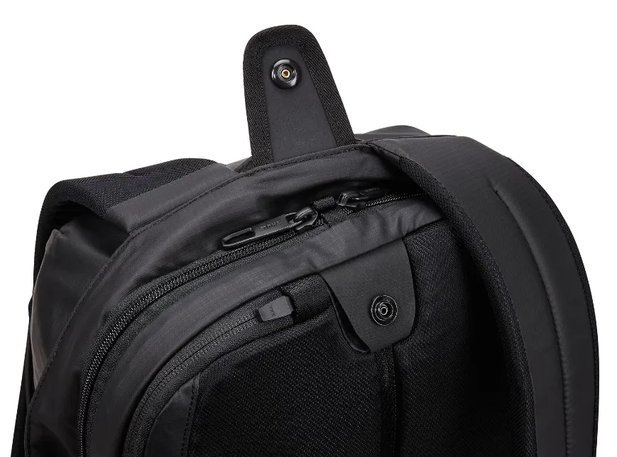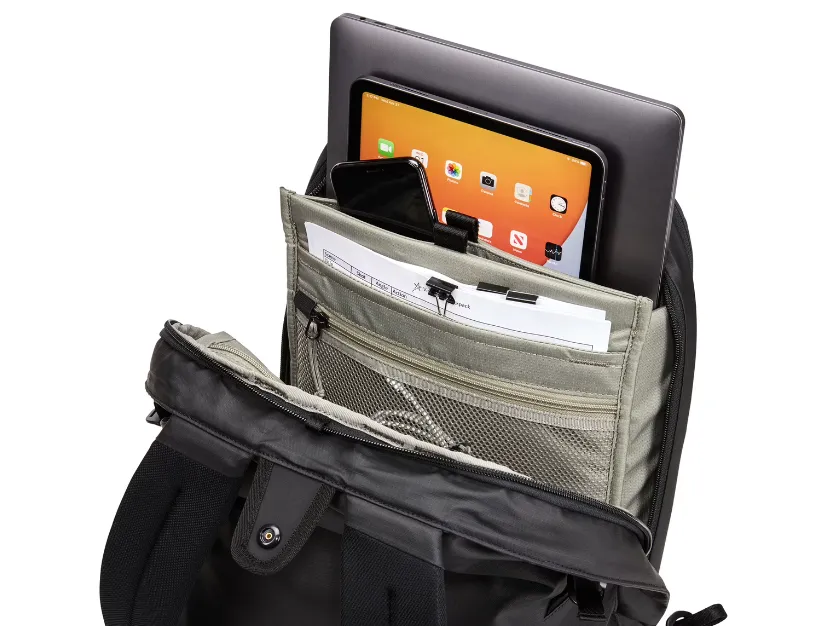 Store daily essentials while protecting a 14" laptop in a padded, elevated pocket and a tablet or files in a dedicated slip pocket; Contents remain secure in main compartment with concealed zippers, a back-facing opening, and a snap flap that closes over the zipper for added security