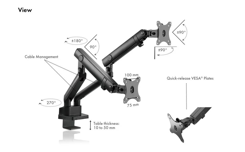 | Seadme tüüp | Mounting kit (adjustable dual arms) - desk-mountable |