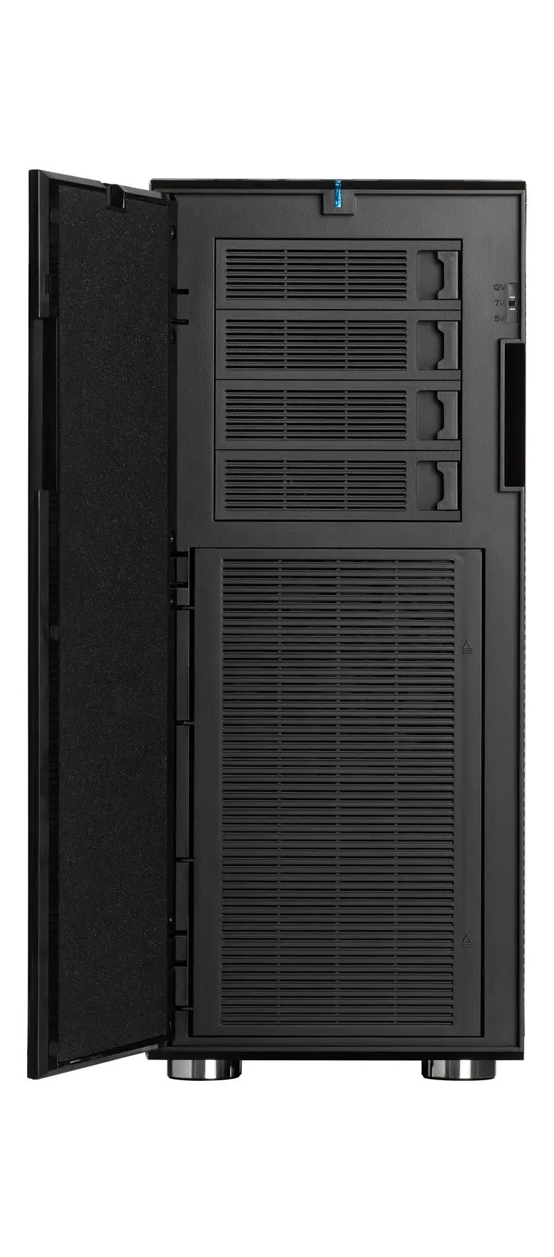 | System Cabinet Features | Air filter, front panel door, fan speed controller, blue LED, removable HDD rack, water cooling holes, ModuVent, bottom mounted PSU holder, cable management system |