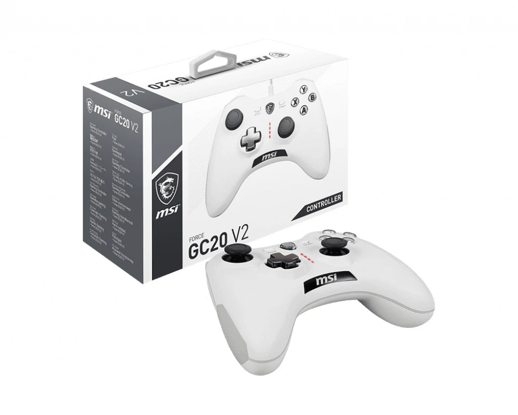 MSI FORCEGC20V2WHITE. Seadme tüüp: Juhtpult, Toetatud mänguplatvormid: Android, PC, Mängukontrolleri funktsiooninupud: Tagasi nupp, D-pad, Makronupp, Lülitusnupp, Start-nupp, Turbo-nupp. Ühenduvustehnoloogia: Juhtmega ühendatud, Seadme liides: USB 2.0. Toote värv: Valge, Kaabli pikkus: 2 m. Toiteallikas: Kaabel. Toetatud Windowsi operatsioonisüsteemid: Windows 10, Windows 7, Windows 8.1