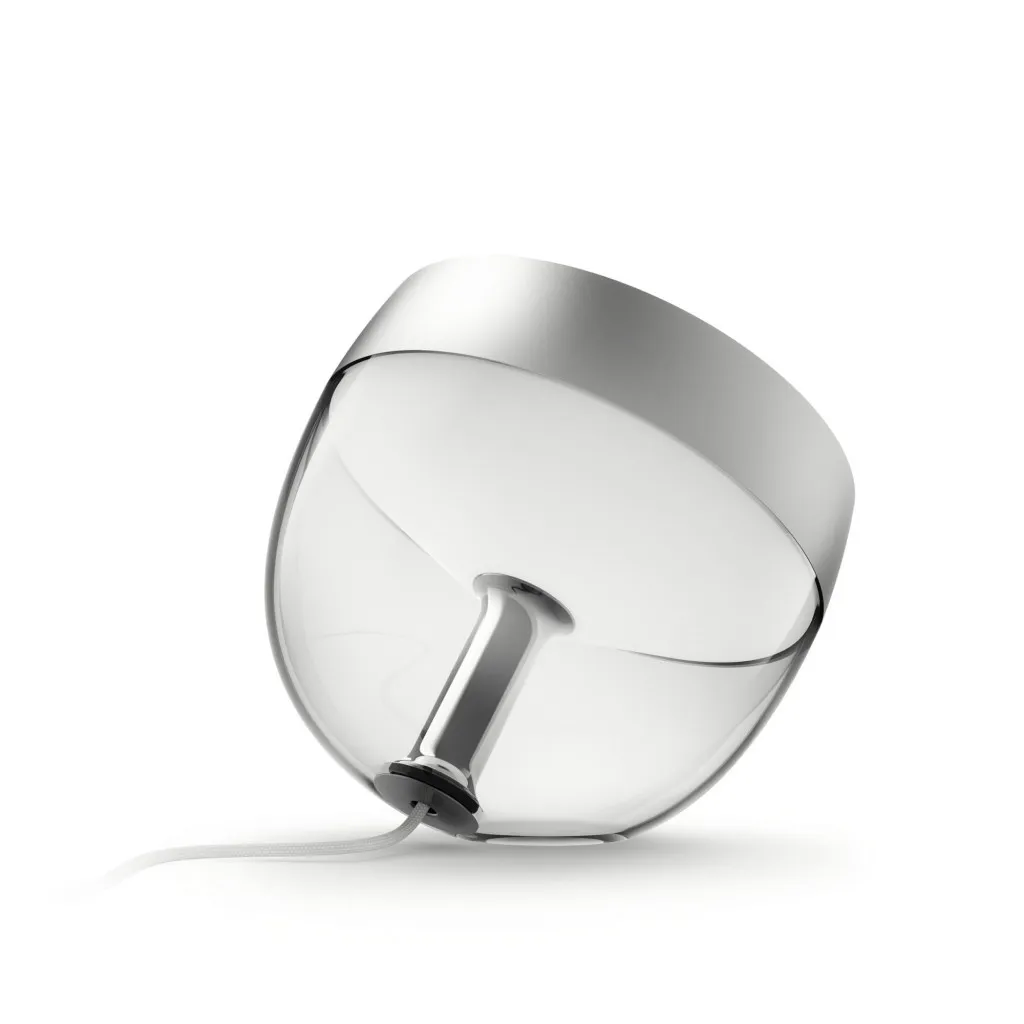 Philips Hue White and colour ambience Hõbedane Iris, eriseeria. Tüüp: Nutikas laualamp, Liides: Bluetooth/Zigbee, Toote värv: Hõbe. Toetatud mobiilsed operatsioonisüsteemid: Android 10.0, iOS 15. Energiatõhususe klass: G, Energiakulu 1000 tunni kohta: 8,1 kWh, Sisendpinge: Напруга 100 В – 240 В. Kaabli pikkus: 2 m, Laius: 188 mm, Sügavus: 204 mm. Pakendi tüüp: Karp, Pakendi laius: 230 mm, Pakendi sügavus: 230 mm