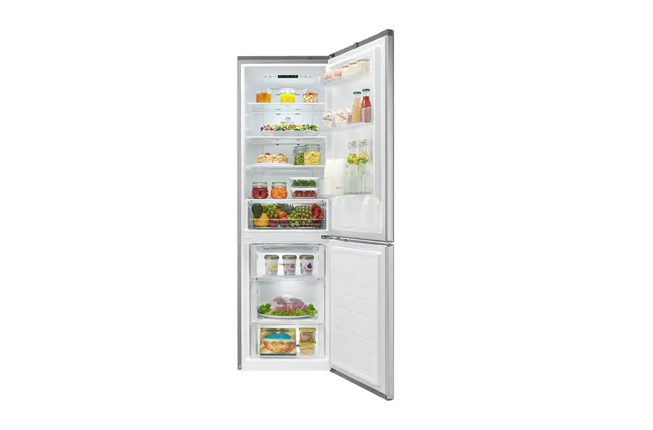 LG GBB59PZJZS. Karbikujundus: Eraldiseisev. Neto kogumahutavus: 318 l. Ukse hing: Parem, Kuvamise tüüp: LED. Kliimaklass: Kliimaklass SN-T, Müratase: 37 dB. Külmkapi netomahutavus: 225 l, Jäävaba (külmik), Multi-õhuvool (külmik), Külmkapi sisemuse valgustus. Sügavkülmiku netomahutavus: 93 l, Külmutusvõimsus: 9 kg/24 h, Jäävaba (sügavkülmik). Energiatõhususe klass: A++, Aastane energiakulu: 240 kWh