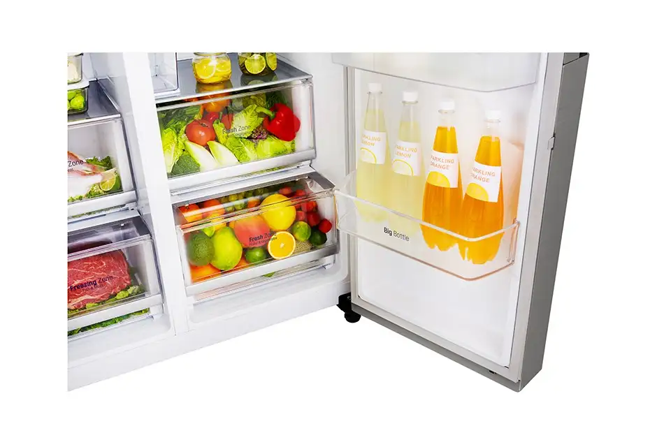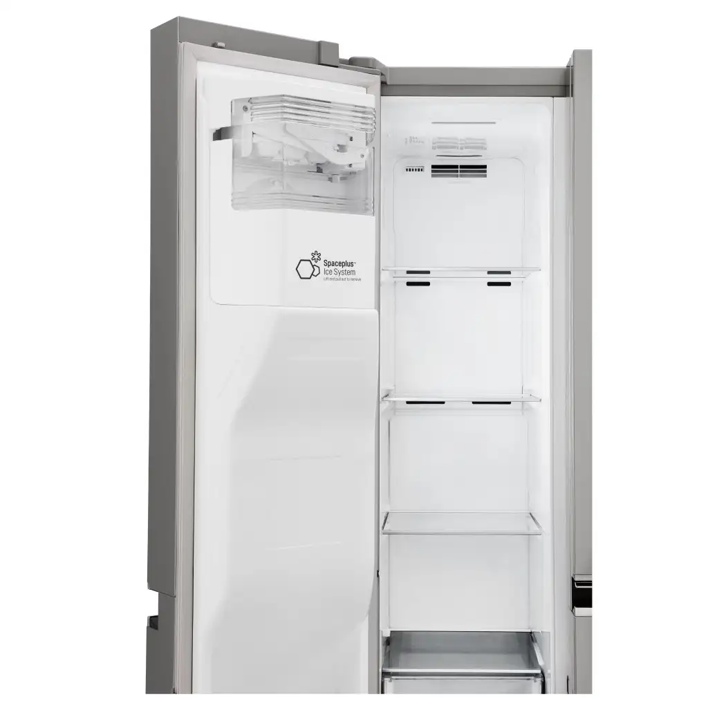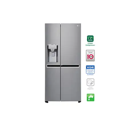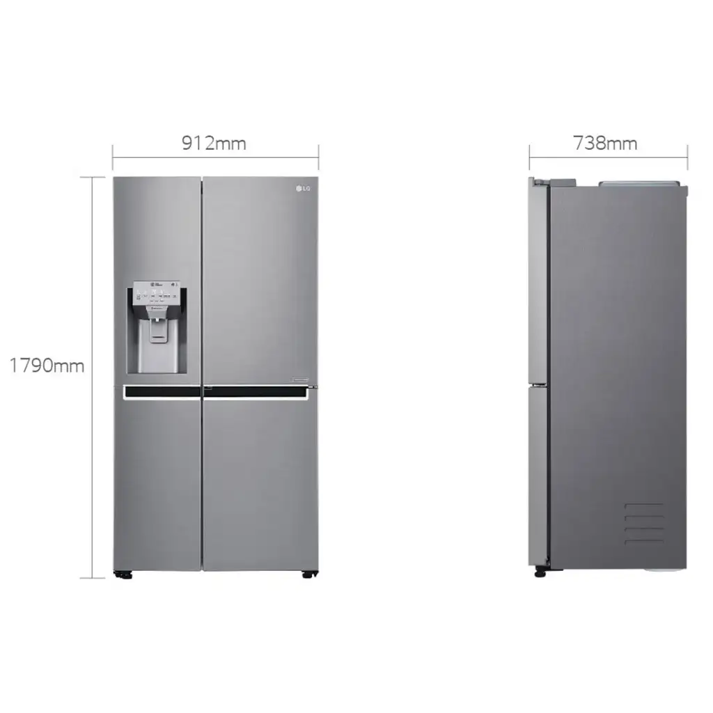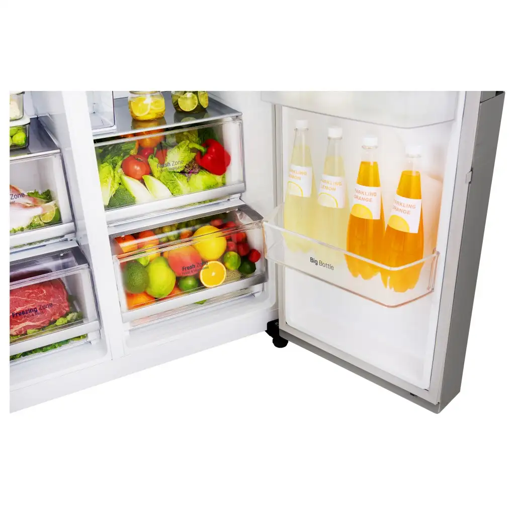 LG GSJ960PZBZ. Seadme paigaldus: Eraldiseisev, Toote värv: Roostevaba teras, Tootedisain: Kahepoolne. Neto kogumahutavus: 601 l, Kliimaklass: T, Müraemissiooni klass: C. Külmkapi netomahutavus: 405 l, Külmkapi brutomahutavus: 422 l. Sügavkülmiku netomahutavus: 196 l, Sügavkülmiku paigutus: Külgmine, Külmutusvõimsus: 12 kg/24 h. Energiatõhususe klass: F, Aastane energiakulu: 376 kWh, Energiatõhususe skaala: A-st G-ni