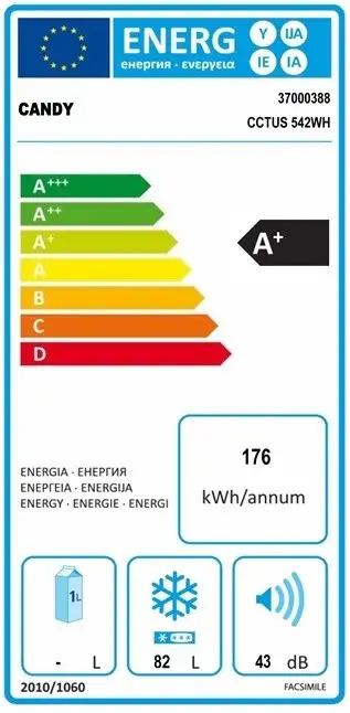 Candy CCTUS 542WH. Sügavkülmiku netomahutavus: 91 l, Kliimaklass: ST, Külmutusvõimsus: 4 kg/24 h, Säilitamise aeg elektrikatkestuse ajal: 16 h, Müratase: 40 dB, Hinnang: 4*. Ukse hing: Parem. Energiatõhususe klass: F, Aastane energiakulu: 208 kWh. Toote värv: Valge