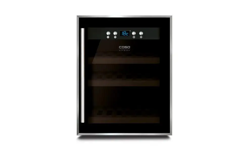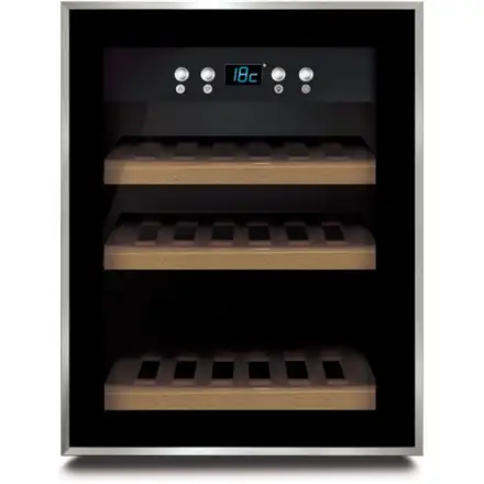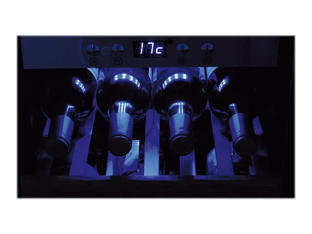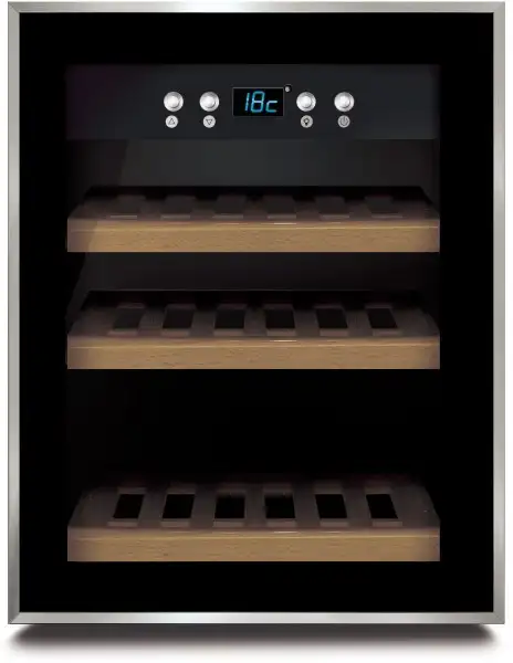| Special features | One temperature zone; UV-resistant insulation protects against loss of flavor; Excellent thermal insulation for the most economical consumption; Blue LED Indicating actual temperature cooling zone; Switchable internal light; Timeless design with elegant stainless steel front and Double-glass panels, ergonomic handle; Ball bearing excerpts wood storage shelves; Silent. |