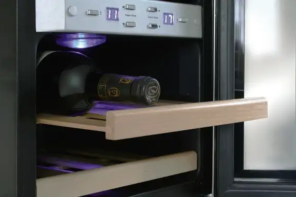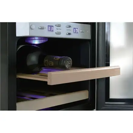 | Special features | Vibration reduction feet, Active fan in each temperature zone, Insulating glass with UV filter, Blue LED temperature indicator of the cooling zones, Switchable interior lighting, Double-glass panels, Ergonomic handle, Ball bearing drawers with wood storage shelves |