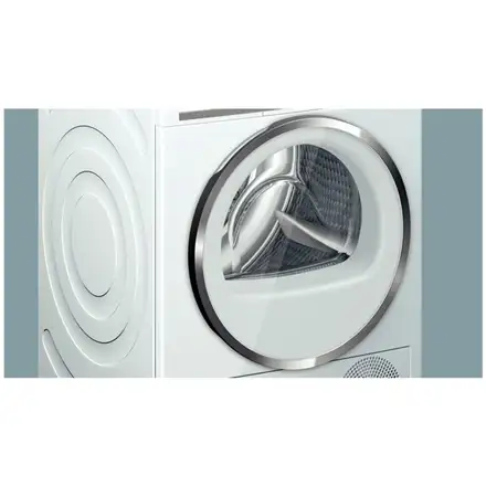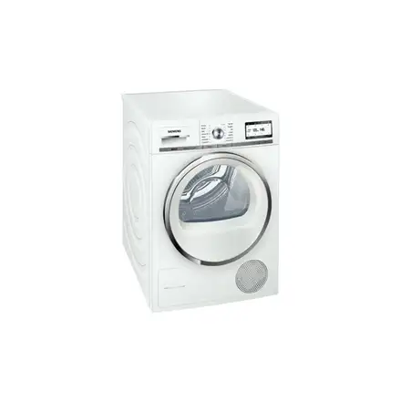 | Special features | Special programmes: woollen finish, mix, outdoor, towels, synthetic blankets, Time prog. 30 min. cold, Time prog 60min. warm, pillow, Cotton, Synthetic, lingerie, rapid 40, shirts/blouses, Anti crease cycle 120 min at the end of the programme, Touch control buttons: less ironing, end time delay, start/pause, options, drying aim, Memory 1, Memory 2, Power button, base settings, 24 h end time delay, multi tone, selfCleaning Condenser, autoDry technology, lighted control dial with integrated On-/Offmode, TFT-Clear text display for easy use, Air flow Drying System: Big Stainless steel drum with textile care structure, soft design paddles, anti-vibration Design: more stability and quietness, Drum interior light: LED, Childproof, Buzzer to indicate the end of cycle, Glass door with frame chrome, white, comfort lock, Door hinge: right-hand, door hinge: reversible, Drain Set |